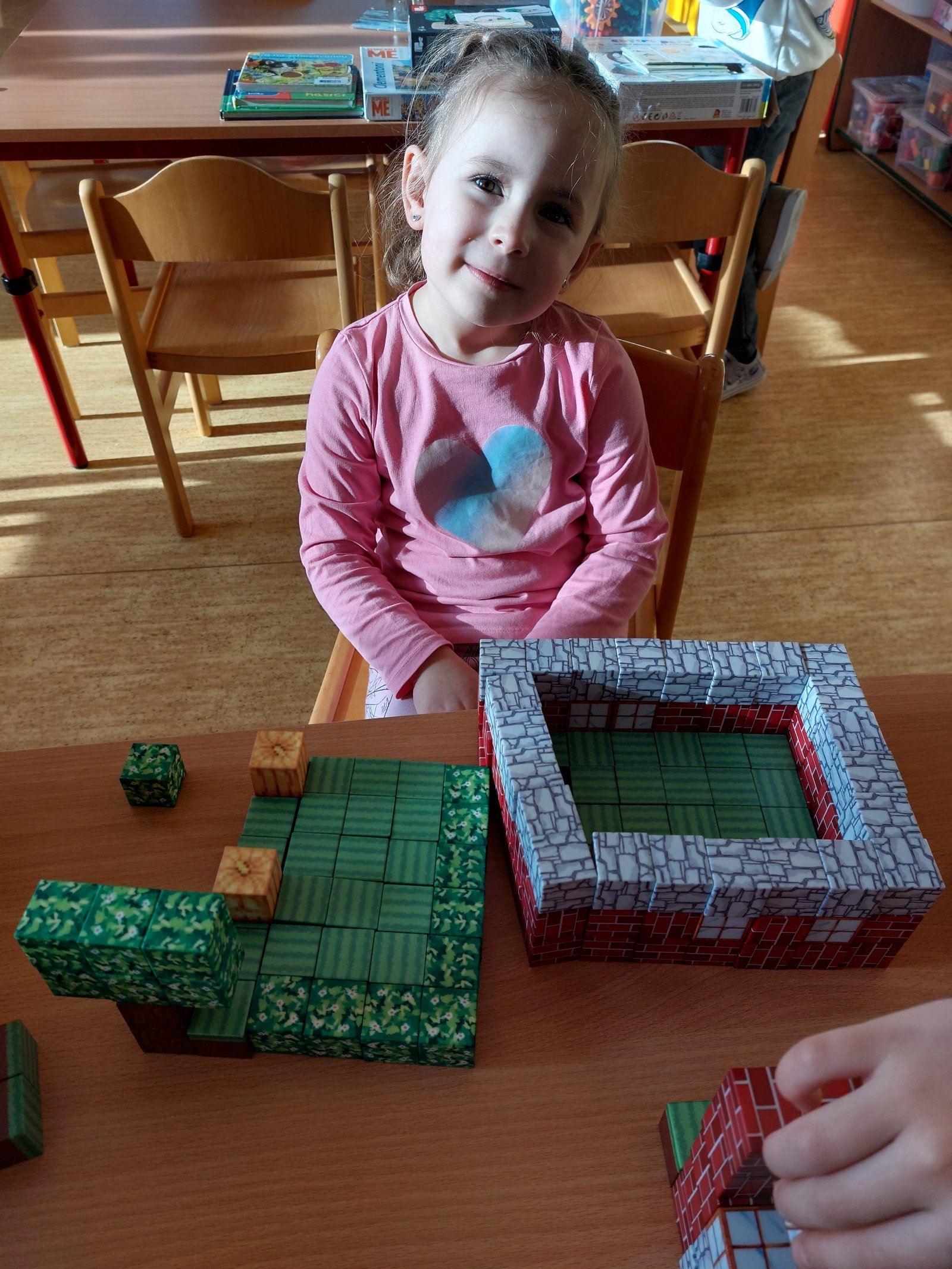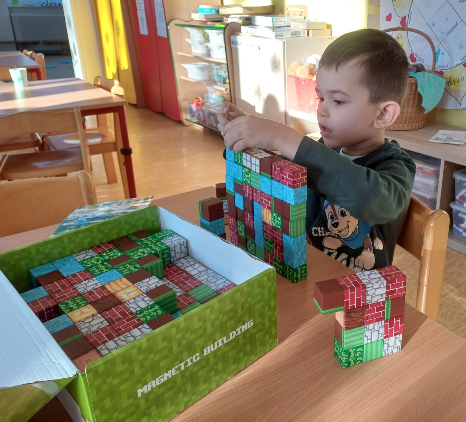 Ve třídě jsou oblíbené pro ranní hru nejrlznější stavebnice. Děti tak hravou formou rozvíjí koordinaci oka a ruky, tvořivost, jemnou motoriku, zručnost a myšlenkové operace. Děti mají radost, když vytvoří něco nového a hotové výtvory si mohou dát na výstavku.
